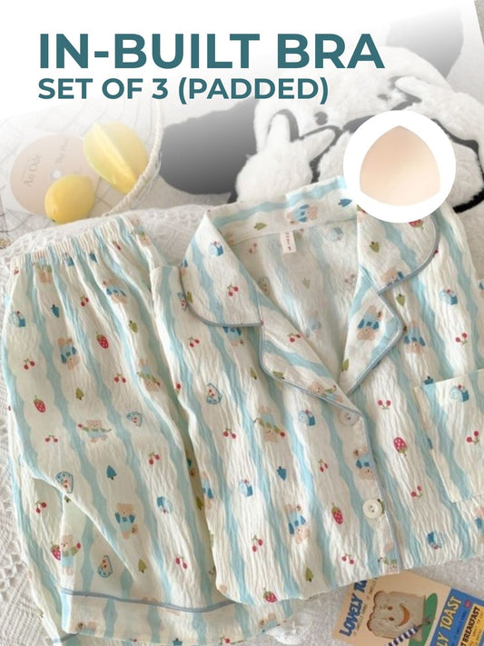 Blueberry Treat Padded Nightsuit Set (3PCS)