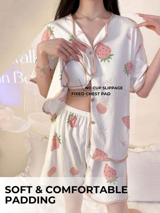 Twilight Bloom Padded Nightsuit Set (3PCS)