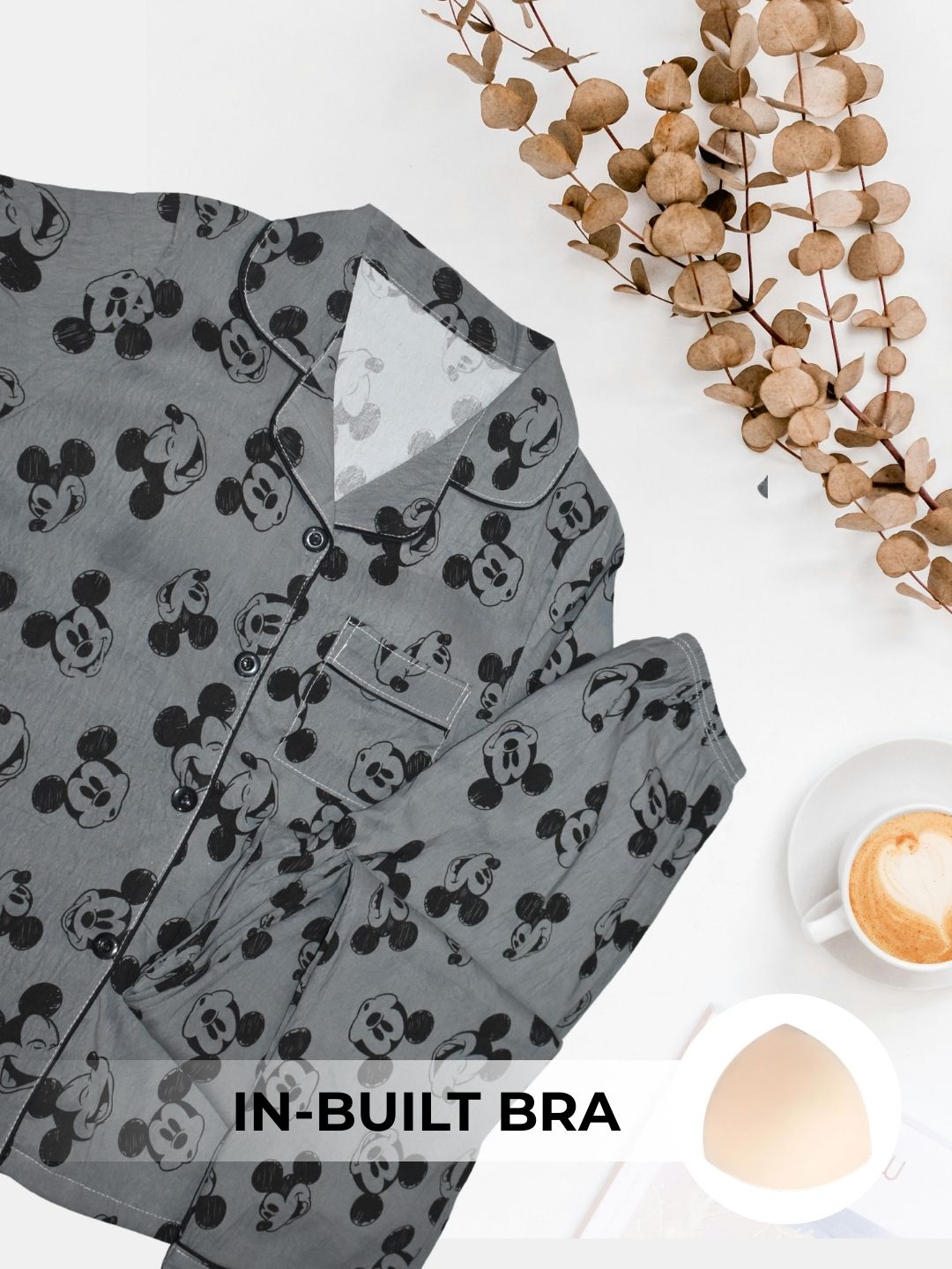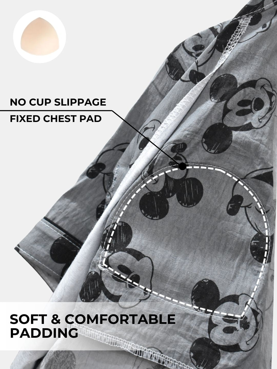 The fixed pads stay securely in place, ensuring all-night ease with no slipping or shifting. Lightweight and breathable, this nightsuit is perfect for winding down after a long day or starting your mornings in relaxed style. With the perfect blend of support, convenience, and chic design, it’s your go-to choice for comfortable yet stylish nightwear.