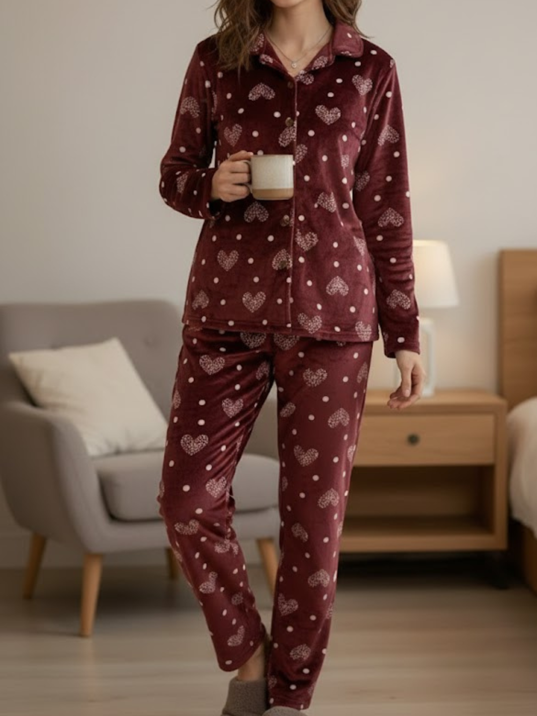 Coral Heart Velvet Nightsuit