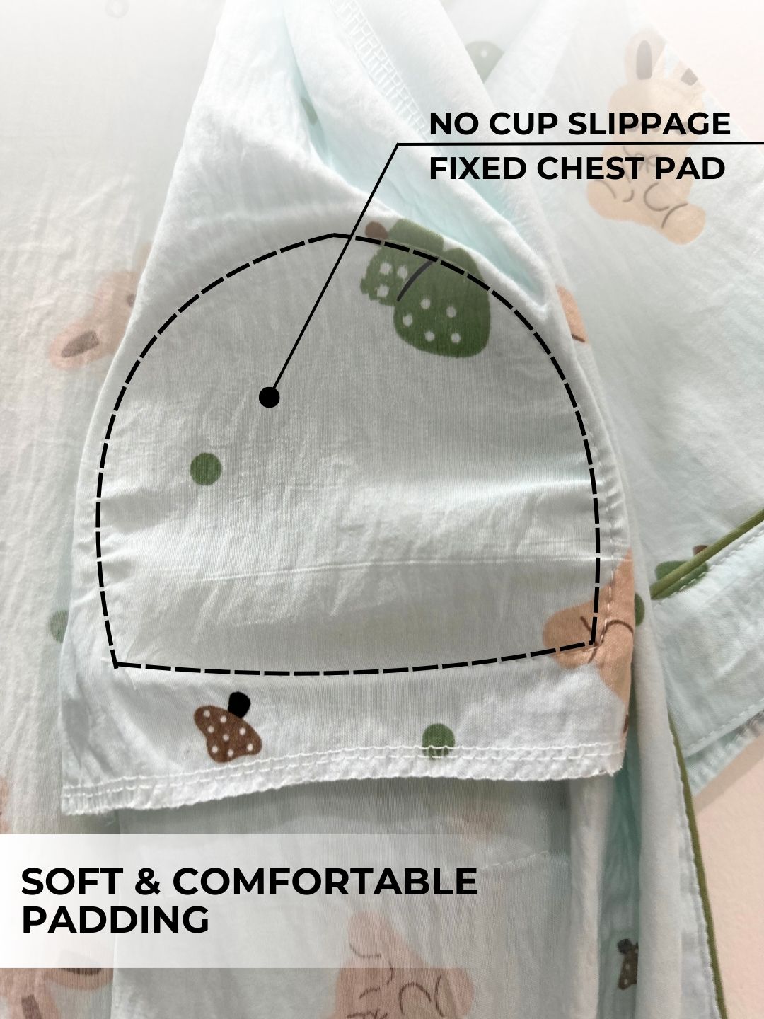 The fixed pads stay securely in place, ensuring all-night ease with no slipping or shifting. Lightweight and breathable, this nightsuit is perfect for winding down after a long day or starting your mornings in relaxed style. With the perfect blend of support, convenience, and chic design, it’s your go-to choice for comfortable yet stylish nightwear.